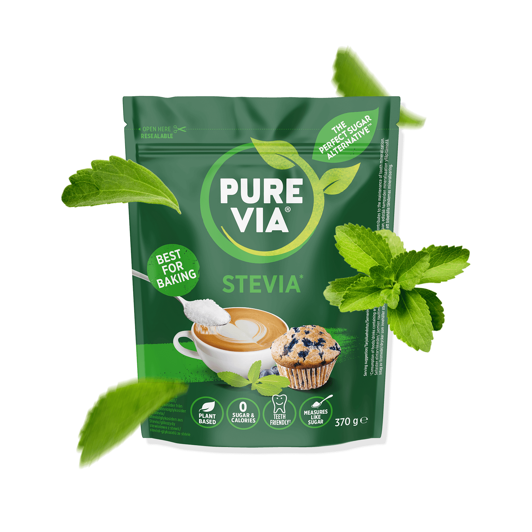 Taianomainen steviakasvi on peräisin Etelä-Amerikasta. Sitä on käytetty sokerin vaihtoehtona jo vuosisatojen ajan. Koska se on luontaisesti paljon sokeria makeampaa, yhdistämme Steviasta uutettua stevioliglykosidia vain pienen määrän muihin kasvipohjaisiin raaka-aineisiin, kuten erytritoliin, ja valmis tuote on herkullisen makea ja kaloriton. Se on tarkoitettu erityisesti leivontaan, joten siihen on käytetty myös akaasiapuun mahlasta saatavaa arabikumia. Koska käytämme lehdistä vain parhaat uutteet, Pure Via® Stevia maistuu luontaisen makealta ilman kitkeryyttä.